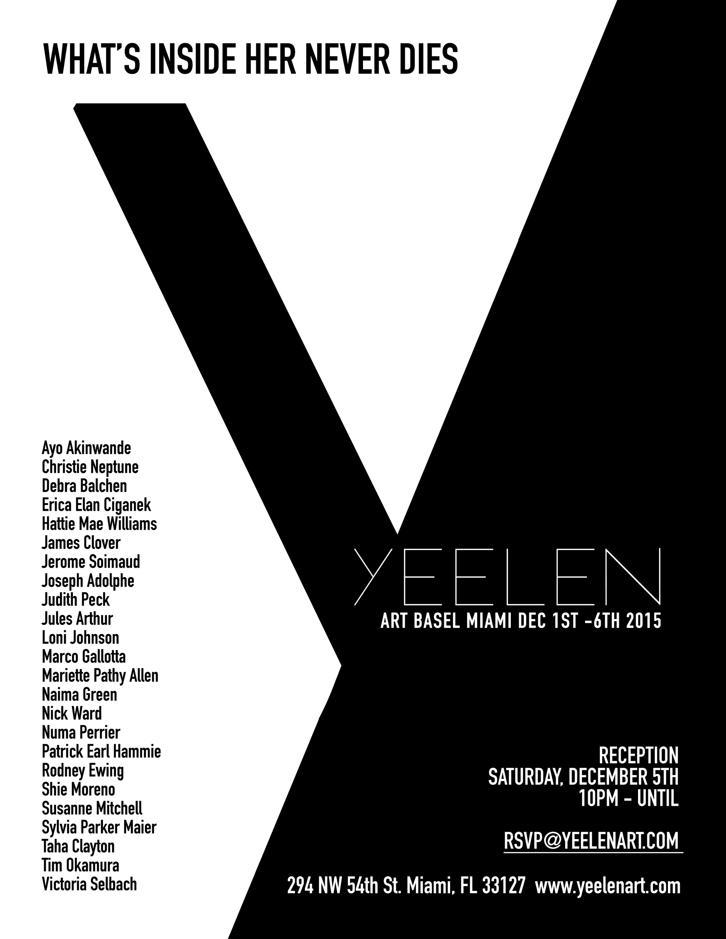 Wednesday December 2 at 130pm is an artist talk/conversation with Michelle Papillion moderated by Nerissa Street. And the opening reception/party is Saturday December 5 at 10pm.  Both at YEELEN GALLERY in Little Haiti/Miami