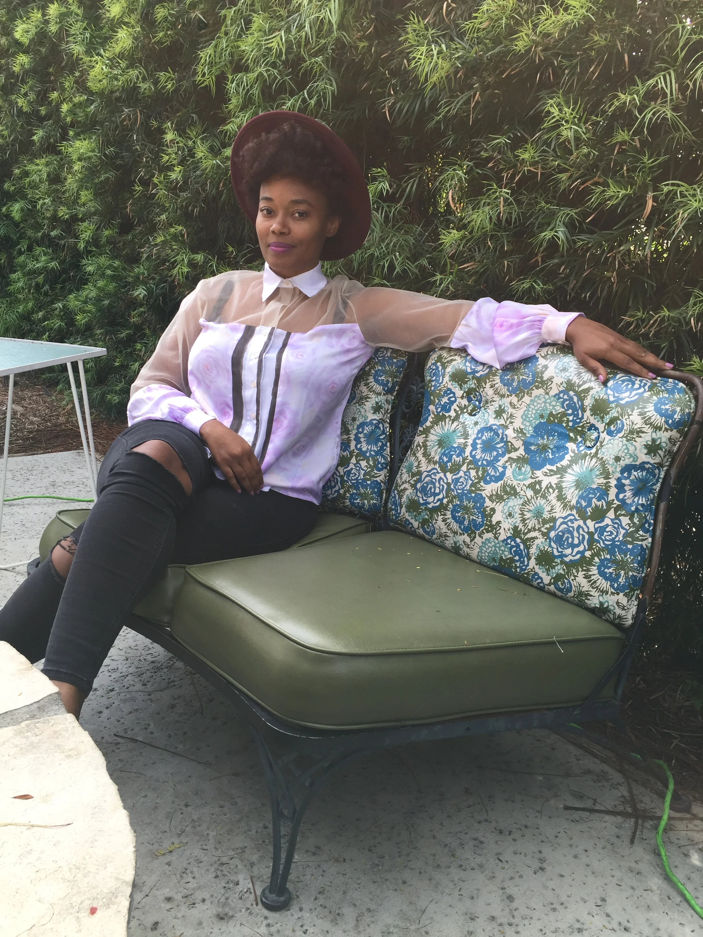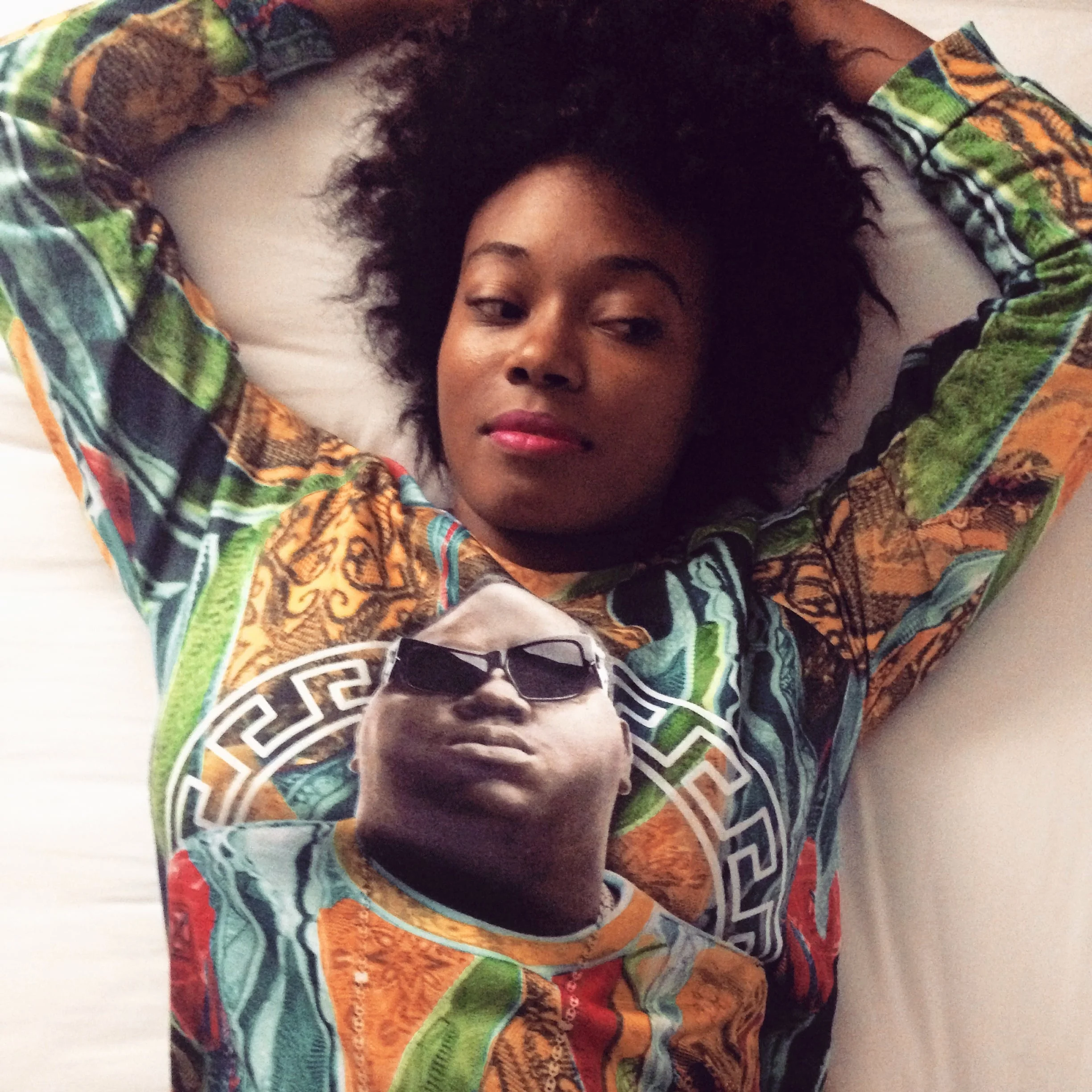 Photo by Dennis Dortch. Jan 2015, San Diego, CA for Girl Boss Feature Biggie Sweatshirt by Forever 21.