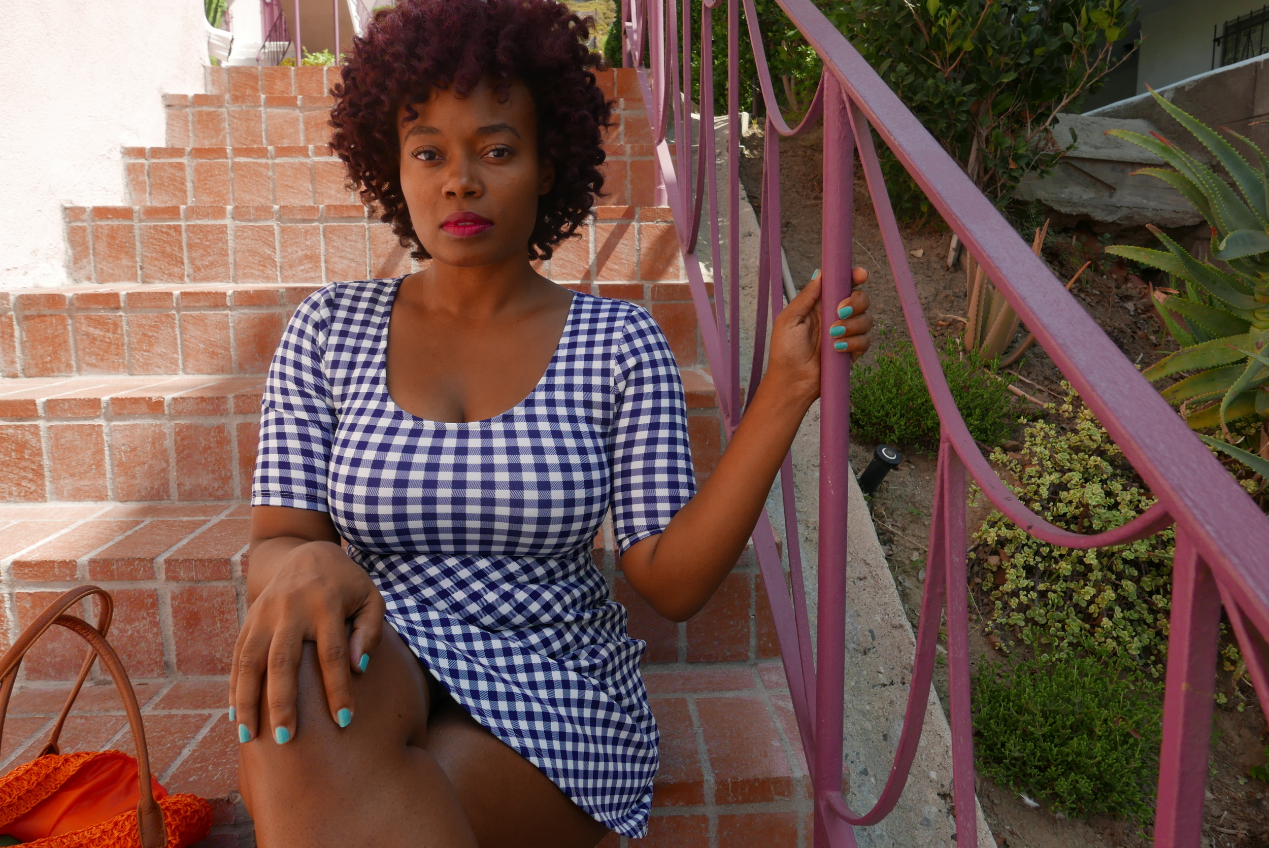 Photo of Numa by Dennis Dortch, 2015 Los Angeles, CA Gingham Dress by Forever Vintage Photo of Eartha Kitt & Marilyn Monroe - Unknown Photographer.